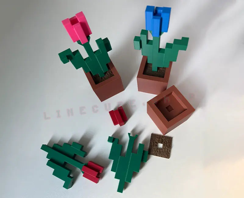Pixel Tulip – Block-Style Potted Flower Desk Decor (Red / Blue / Pink)